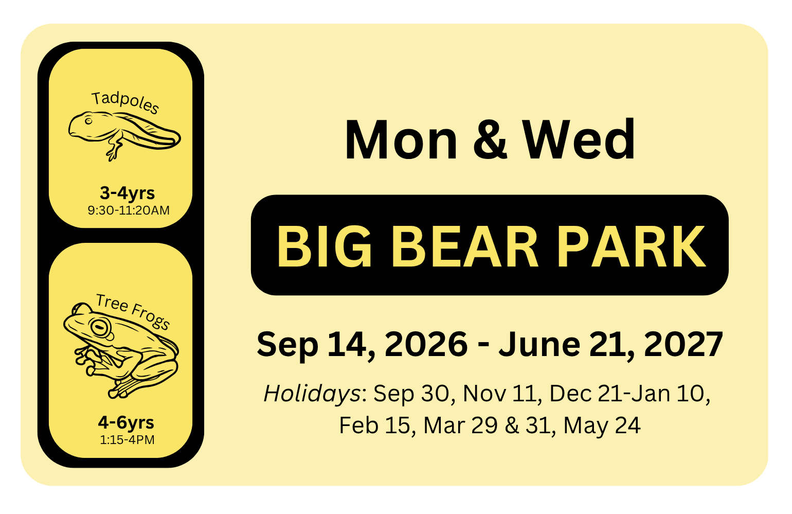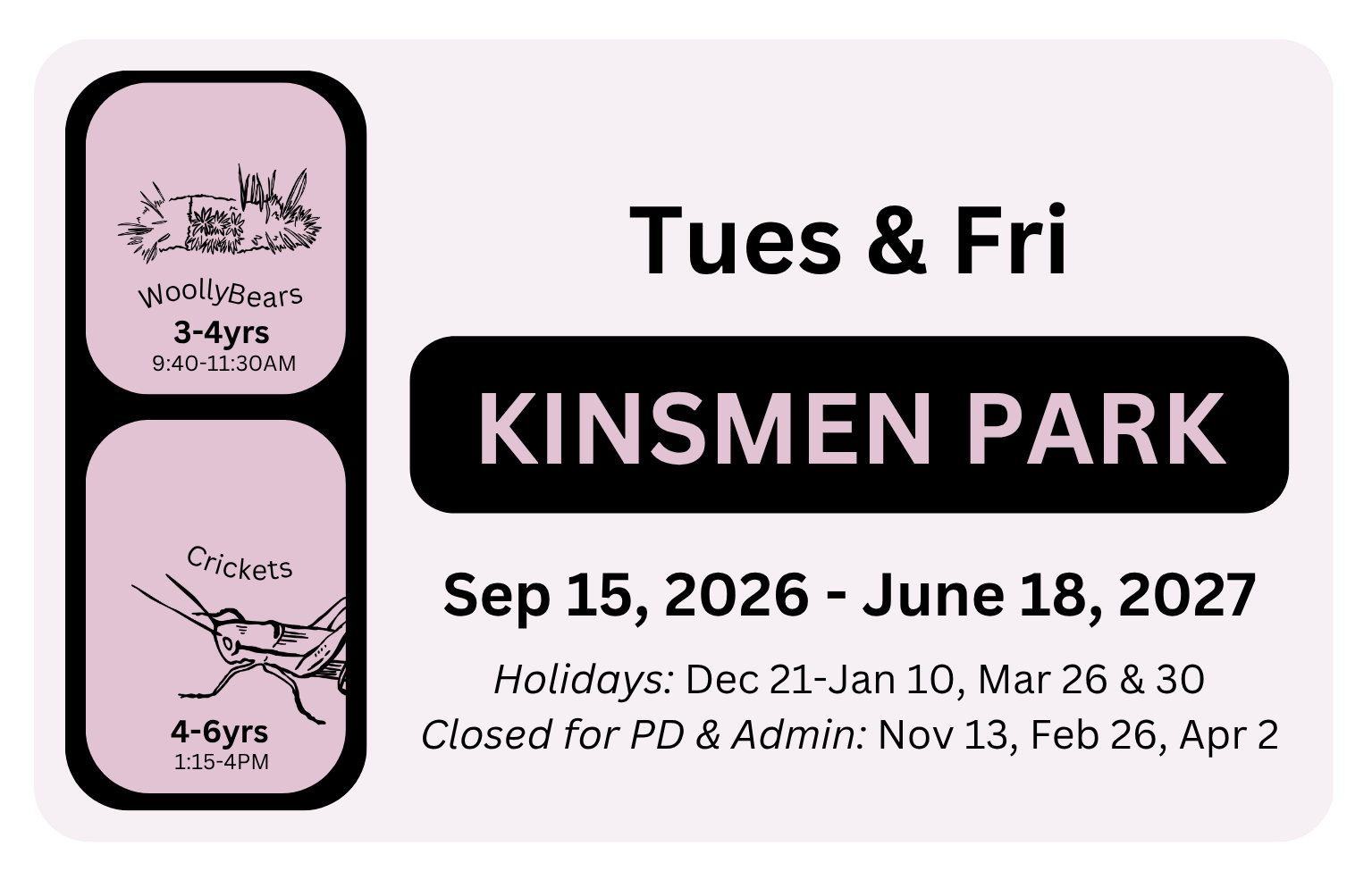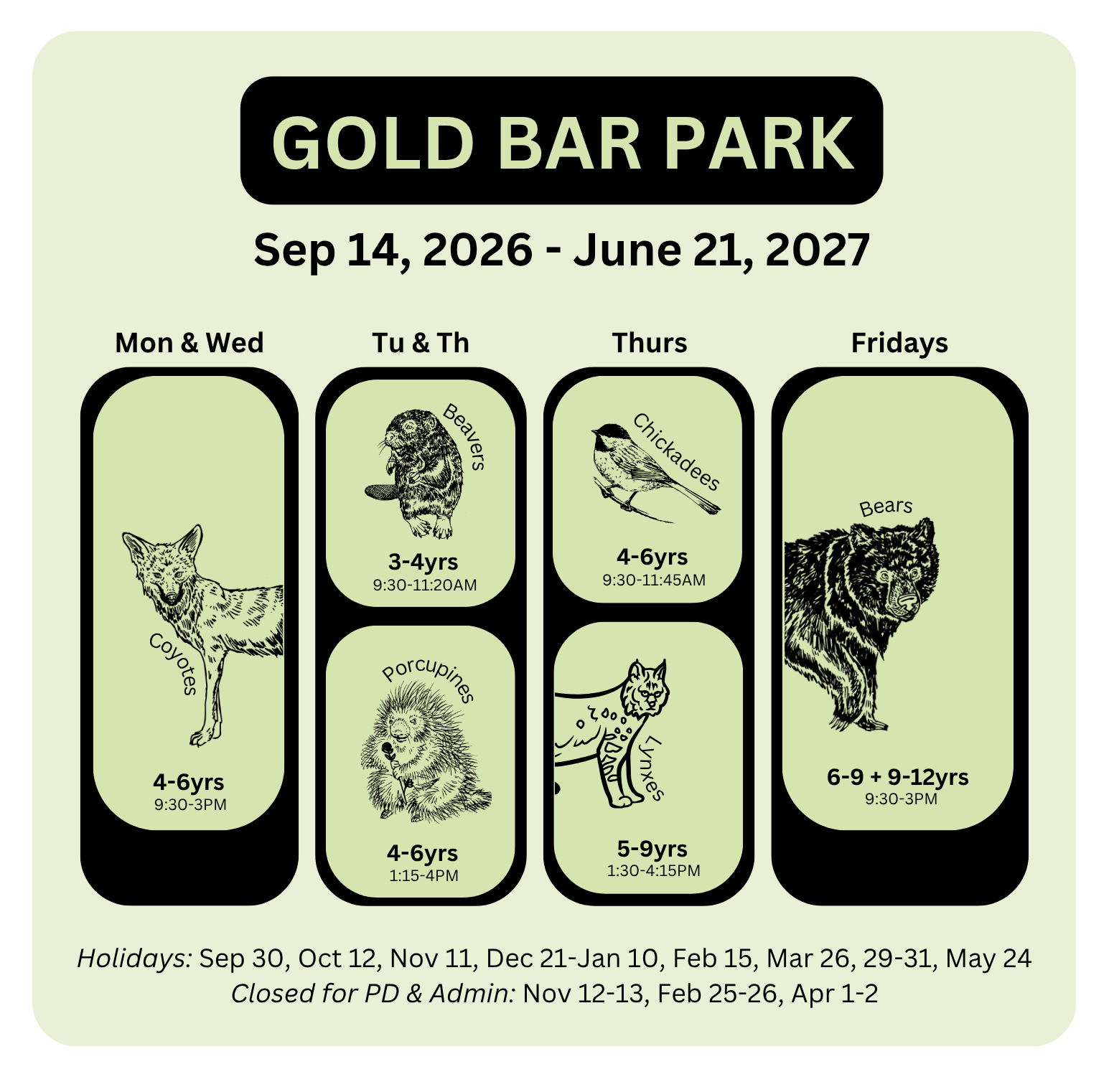 Programs run September 14, 2026 to June 21, 2027